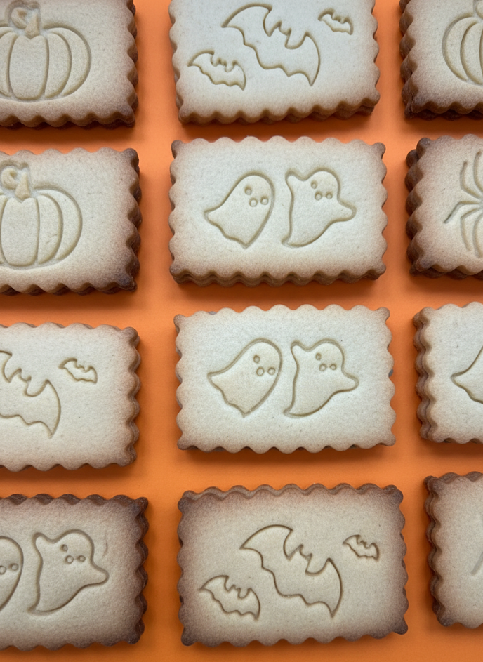 Each buttery shortbread is carefully crafted and decorated with spooky-yet-charming designs—think pumpkins, ghosts, bats, and haunted motifs—perfect for gifting or adding a touch of sweetness to any Halloween celebration.